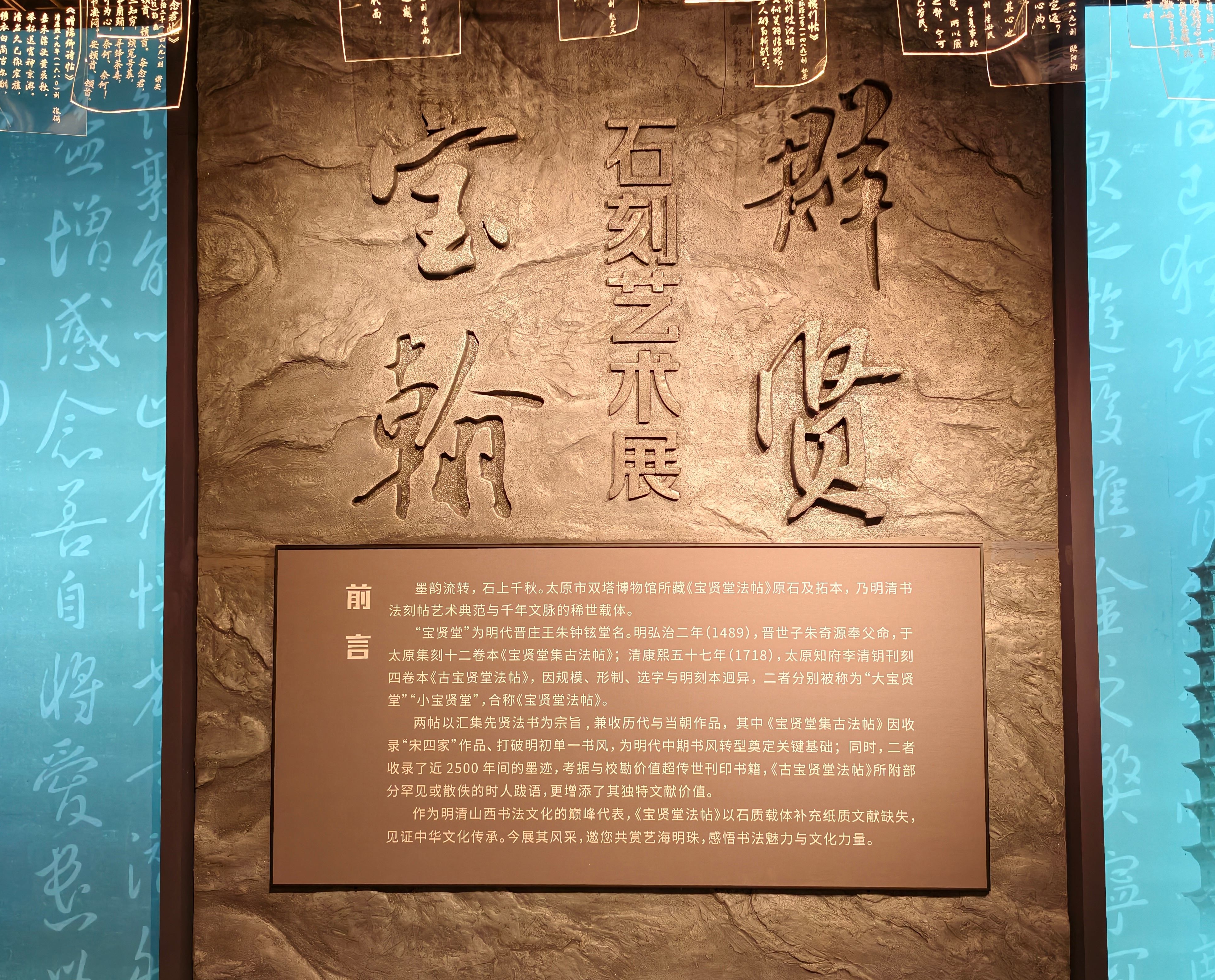 展览聚焦双塔博物馆馆藏宝贤堂法帖,通过“翰墨渊薮”“墨舞笔韵”“法墨新规”三个单元,深入解读宝贤堂法帖的历史渊源、艺术特点与文化价值。本次展览,共计展品67件,原石、拓本与拓片相互映衬,辅以高清数字影像、互动体验及文创展示等多元手段,让观众在沉浸式体验中感受石刻艺术的独特魅力。